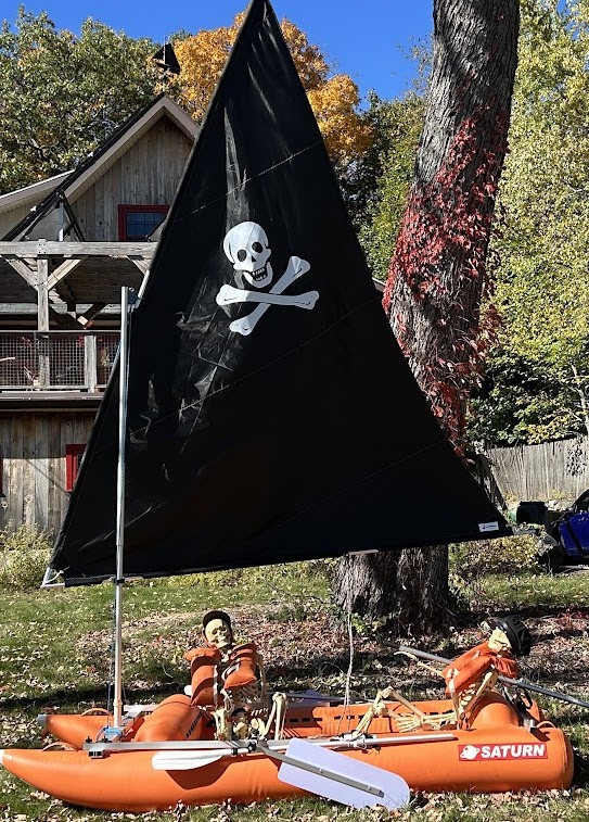 Skeleton crew sails the Dinky Cat -- probably on River Styx. You could have your very own Dinky Cat and/or Pirate Sail. Just enter what you want to find in the site search function -- click on "search" in the blue bar at upper right.